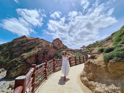 – 14:30 xe đón và đưa đoàn khởi hành khám phá thành phố Quy Nhơn với hai điểm check in nổi tiếng là Eo Gió: nơi vẫn còn giữ được cho mình vẻ đẹp tự nhiên đầy hoang sơ. Đứng từ trên cao nhìn xuống, Eo Gió như một bức tranh sơn thủy hữu tình với trời, mây, nước… biển núi ôm nhau vừa gợi cảm, vừa hoang sơ đầy quyến rũ.